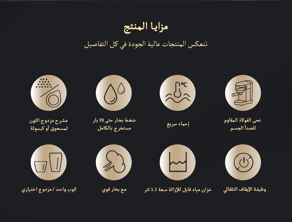نوع الكبسولة : البن المطحون + الكبسولات