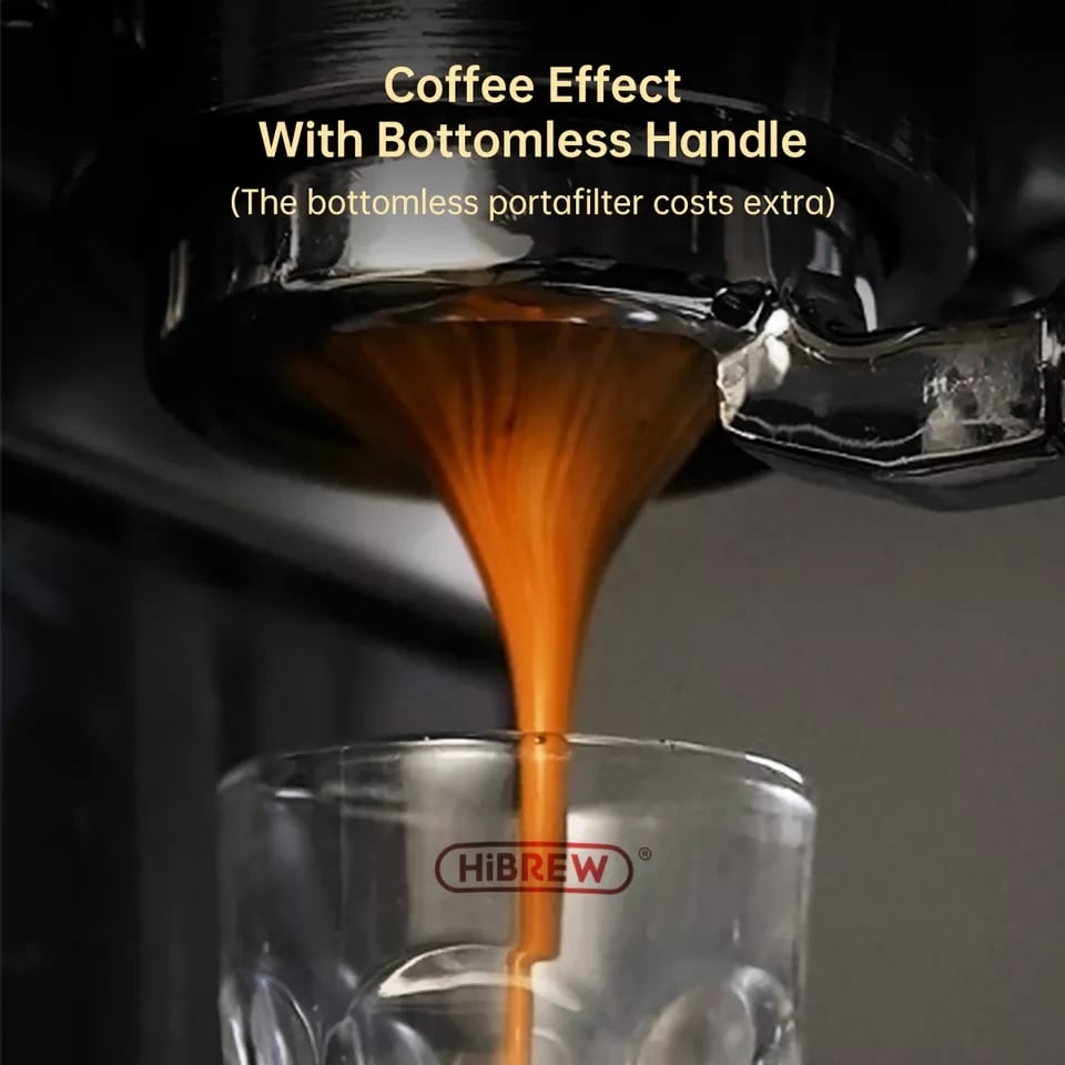 The amazing coffee maker provided by Hi Brew, compact size, width 120 mm, steaming with 3 holes nozzle, pre-brewing: yes, programmable brewing time: yes